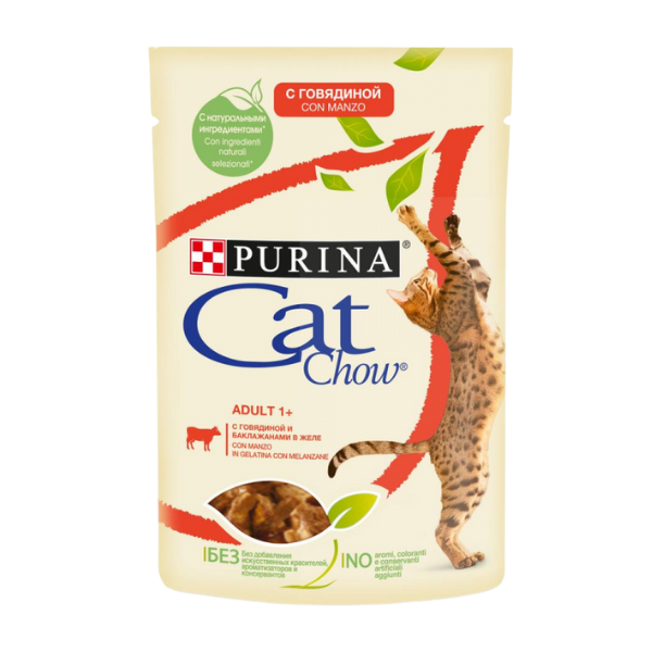 ГлавнаяМагазинДЛЯ КОШЕК Cat Chow говядина и баклажаны, 85г*24шт.