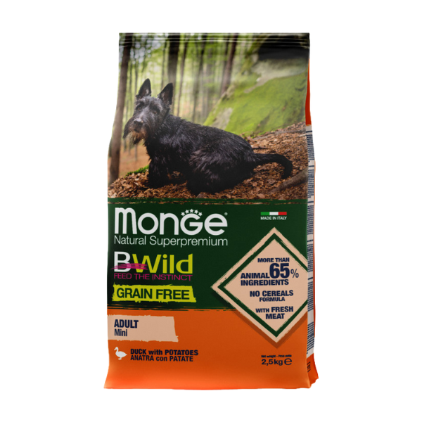 Состав: мясо утки (дегидрированное 38%, свежее мясо 10%), картофель (20%), животный жир (17%) (очищенное утиное масло 99,5%), картофельный белок (8%), пивные дрожжи, сухая свекольная пульпа, гидролизованный животный белок, рыбий жир (очищенное масло лосося 99,5%), минеральные вещества, маннанолигосахариды (М.O.S. 1%), ксилоолигосанхариды (Х.О.S. 0,3%), юкка Шидигера (0,3%), спирулина (0,3%), глюкозамин (0,057%), хондраитина сульфат (0,04%), порошок молочного белка.