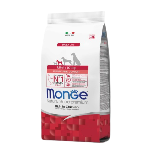 Monge DRY DOG MINI PUPPY JUNIOR с курицей – полноценный корм для щенков небольших размеров. Они гарантируют благополучие вашей собаки благодаря очень высококачественным питательным веществам. Основным ингредиентом является курица, и они обогащены XOS (ксилоолигосахаридами), последним поколением пребиотиков, которые поддерживают здоровье кишечника.