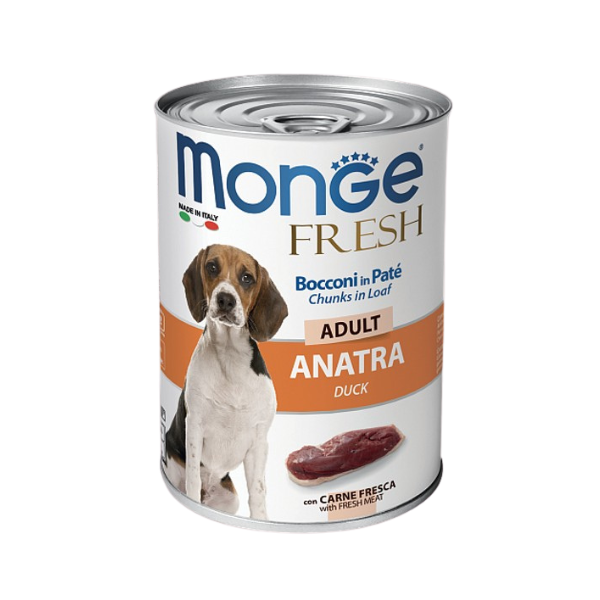 ГлавнаяМагазинДЛЯ СОБАКMonge для собакВлажный корм для собак Monge FRESH ADULT duck 6 шт*400 гр