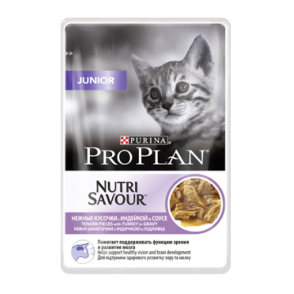 - Специально разработанные нежные кусочки в соусе для котят, которые легко жевать;