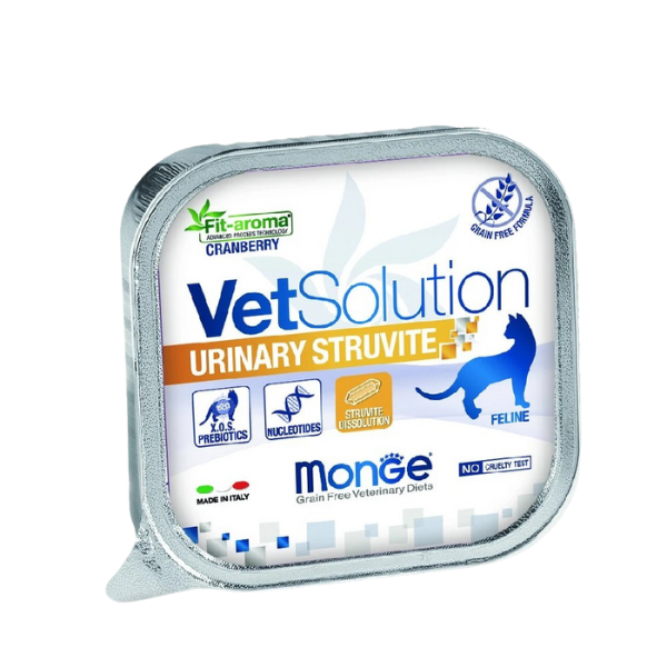 Комплекс Fit-aroma® в корме Monge Vetsolution Urinary Struvite содержит экстракт клюквы, богатый проантоцианидинами (ПАЦ). Благодаря своей уникальной молекулярной структуре ПАЦ связываются с адгезинами (факторами вирулентности, обеспечивающими прикрепление бактерий к уроэпителиальным клеткам). Они действуют посредством угнетения разных типов адгезинов (MR- и MS-адгезины) на ворсинчатой поверхности бактерий. Фруктоза угнетает MS-фимбриальный адгезин; ингибитор с высоким молекулярным весом убивает MR-адгезины, предотвращая колонизацию мочевого пузыря. олигомерные проантоцианидины могут предотвращать возникновение вызываемого струвитами пероксидативного повреждения, восстанавливая активность внутриклеточных антиоксидантных ферментов.